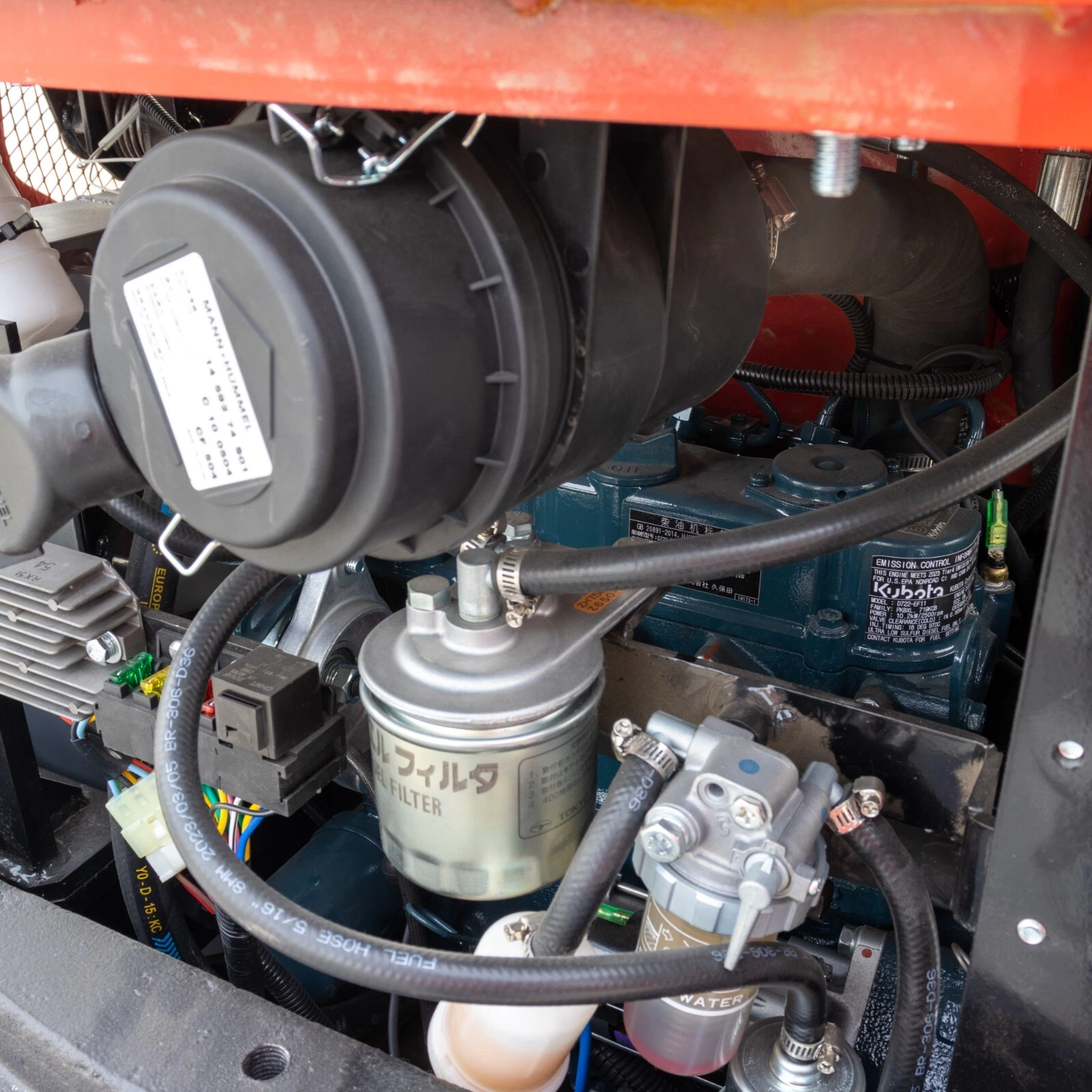 Engine: Kubota D902, 3-cylinder, liquid-cooled industrial diesel