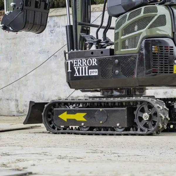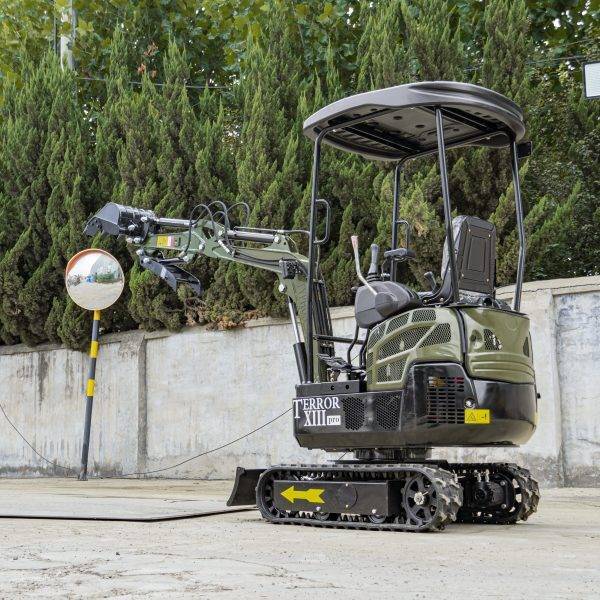 The TYPHON TERROR XIII PRO STORM Mini Excavator is a 1.3 ton trench digger with a canopy and a hydraulic thumb clip. It’s perfect for modest construction jobs. This little but powerful machine is designed to be easy to move around and work well in a variety of places, such as farms, gardens, public spaces, parks, orchards, and more.