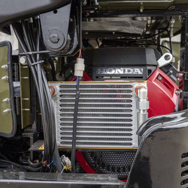 It has a modest yet powerful 22.1hp HONDA GX690 gas engine that makes it run smoothly. The Honda GX690 is a 4-stroke, 688 cc V-twin OHV petrol engine that is cooled by air. It makes 22.1 hp (16.5 kW) at 3,600 rpm and 35.6 lb-ft (48.3 Nm) of net torque at 2,500 rpm. It has a forced lubrication system, digital CDI ignition, a 2-barrel carburetor, and an electric start.